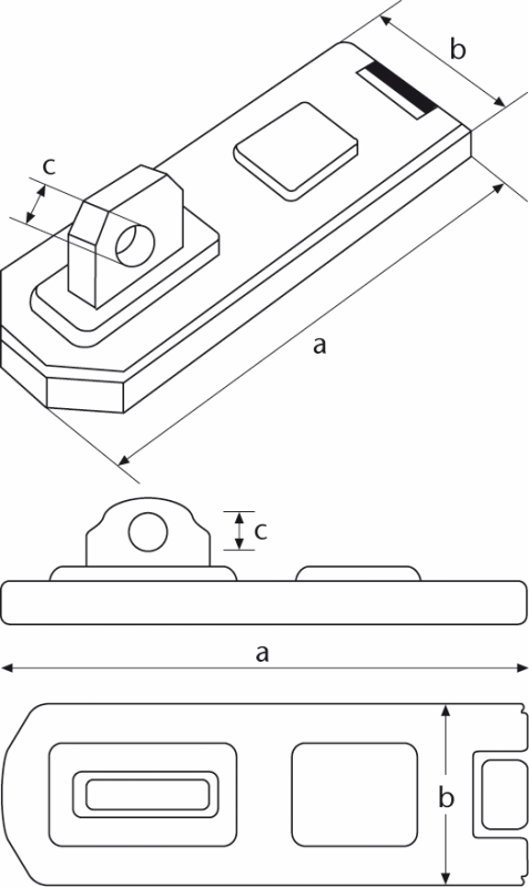 ΚΑΤΕΒΑΤΗΣ granit ABUS 130 ΑΣΦΑΛΕΙΣΤΕ ΠΟΡΤΕΣ και ΑΠΟΘΗΚΕΣ ΜΕ ΤΟΝ ΓΡΑΝΙΤΕΝΙΟ ΚΑΤΕΒΑΤΗ ΤΗΣ ABUS κατα του τρυπήματος και κοψίματος Οι βιδες προφυλάσσονται με 6mm πλάκα γρανίτη και το αυτί εχει πάχος 12mm. διαστάσεις: a=180/b=35/c=12 |