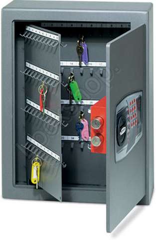 Πίνακας κλειδιών ασφαλείας 40 ή 120 θέσεων που κλειδώνει με ηλεκτρονικό κωδικό 4 έως 10 ψηφίων που δεν προεξέχει από την πόρτα. Ειδική βαφή με εποξική πούδρα που προστατεύει την κλειδοθήκη από γρατζουνιές και τυχών κτυπήματα και εσωτερική πλάκα μαγγανίου κατά του τρυπήματος των ευαίσθητων σημείων της κλειδαριάς.